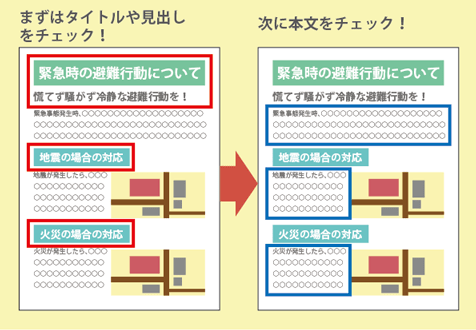 タイトルや見出しなどパッと見て目を引く部分(図の赤枠の範囲)