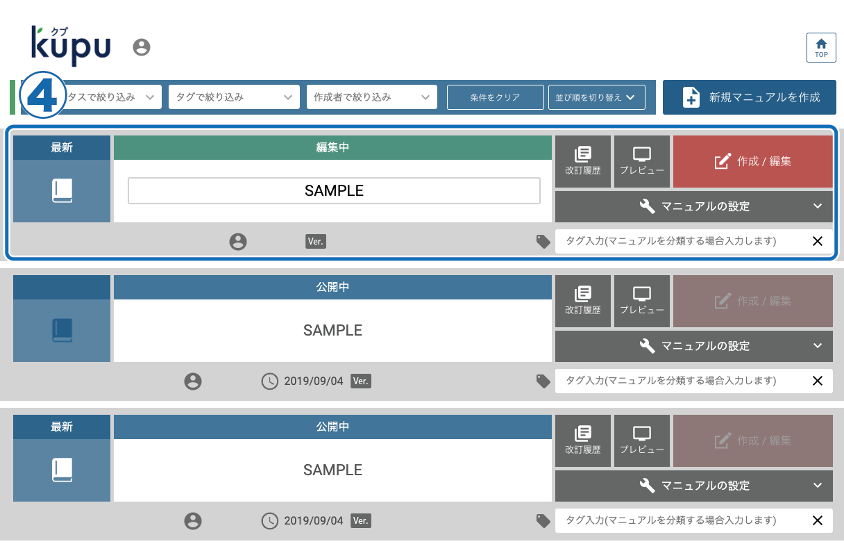 ④新しいバージョンのマニュアルが編集可能な状態で追加されます。