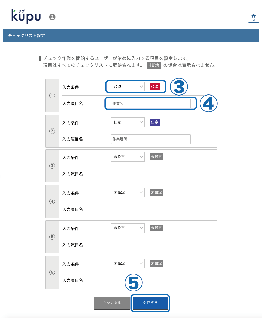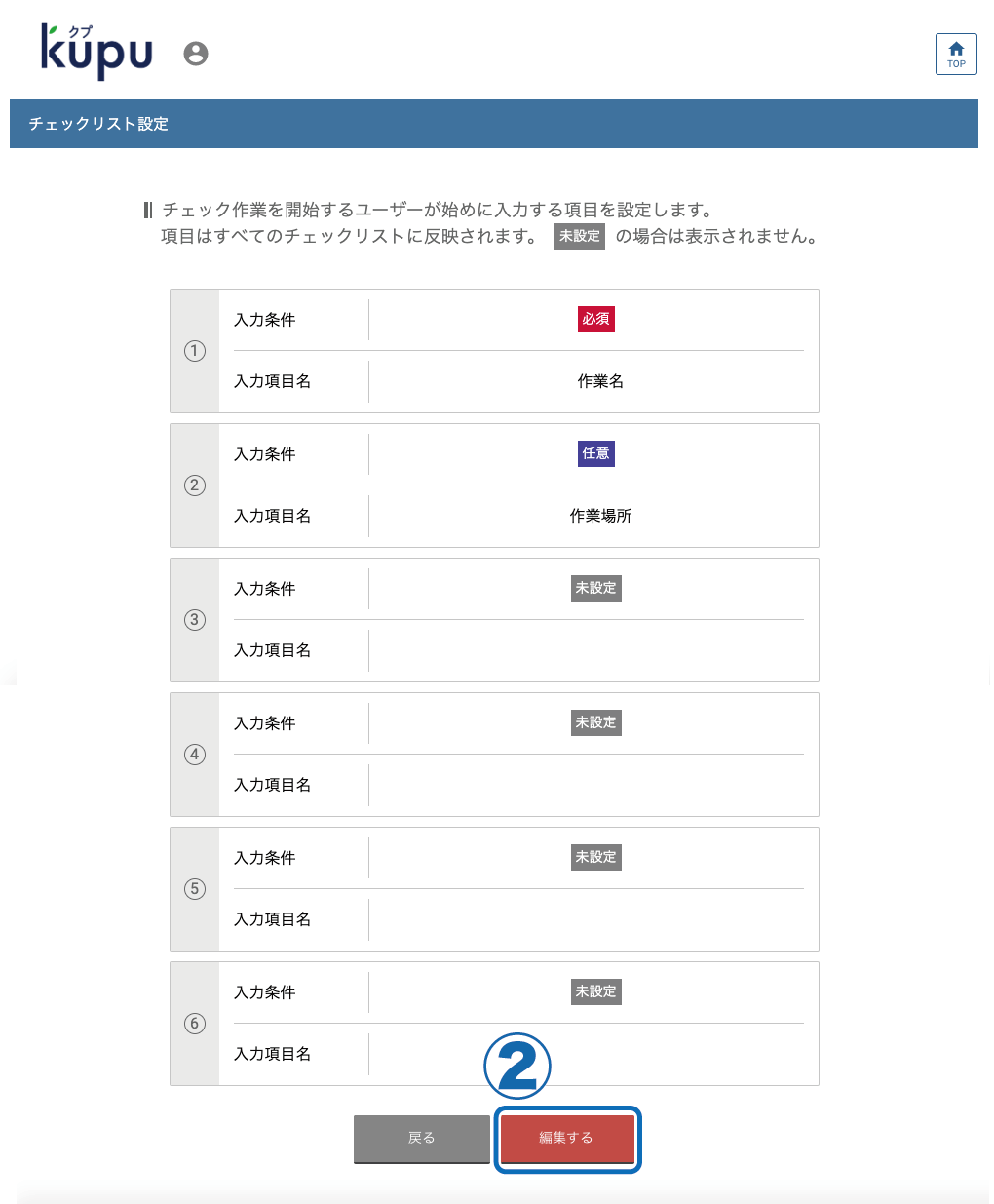 チェック作業開始時の入力項目、および項目数を変更できます。