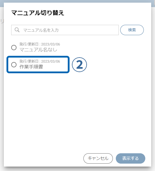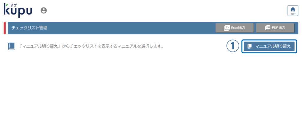Q チェックリスト管理画面でチェックリストを表示するには? カテゴリー: チェック機能について A ①「マニュアル切り替え」ボタンをクリックします。 ②マニュアル切り替えダイアログから表示したいマニュアルを選択し、「表示する」ボタンをクリックします。 関連記事 作業時間の合計・平均とは? 選択したマニュアルに紐づく、すべてのチェックリストの集計が表示さ... [続きを読む] カテゴリー: チェック機能について Wチェック機能はあるか? Wチェック機能はございません。チェック項目は1ページにつき1項目... [続きを読む] カテゴリー: チェック機能について Excel出力したチェックリストのデータが文字化けするときは? 以下の方法をお試しください。 ◆ Windows7 Win... [続きを読む] カテゴリー: チェック機能について