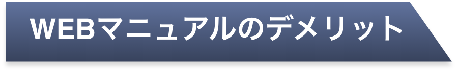 紙マニュアルや電子データは、オフラインでも閲覧することができますが、WEBマニュアルはインターネット経由でマニュアルデータにアクセスする必要があるため、閲覧にはインターネット環境が整っていることが必須条件になります。
